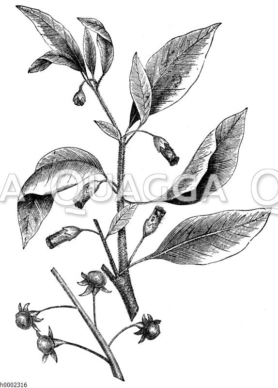 Tollkirsche, Wolfskirsche: Zeichnung/Illustration/Holzstich – Atropa belladonna – belladonna – belladone