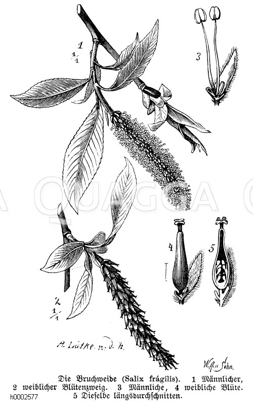 Bruchweide: Zeichnung/Illustration/Holzstich – Salix fragilis – –