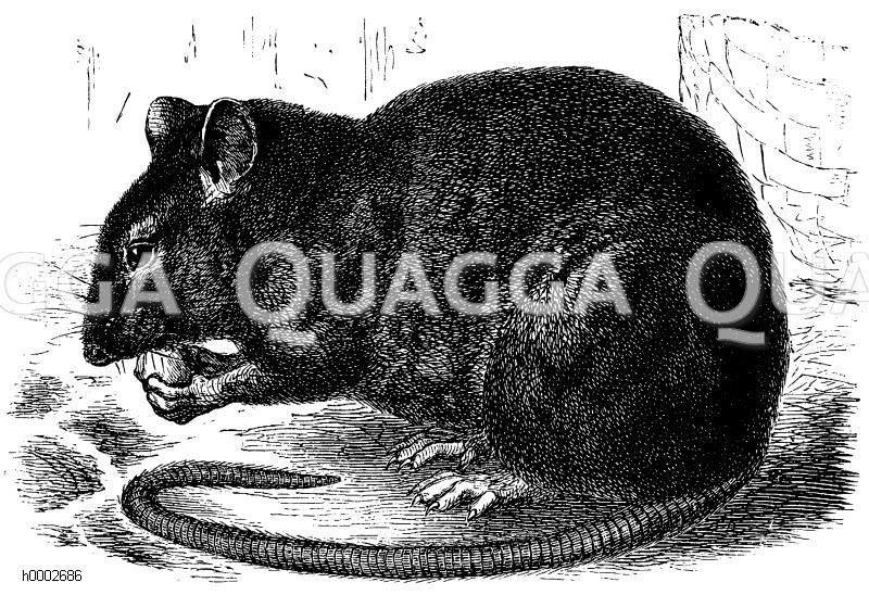 Hausratte: Zeichnung/Illustration/Holzstich – Mus rattus – –