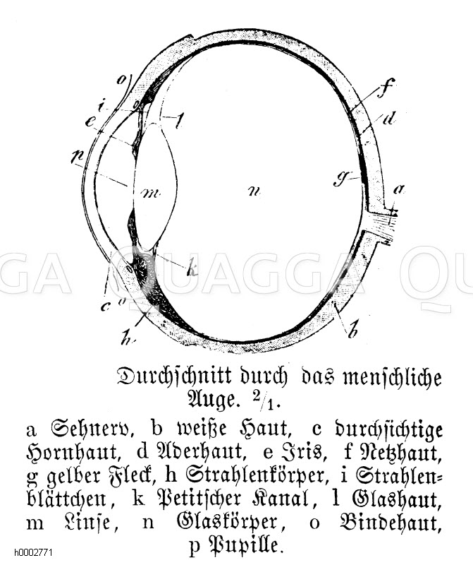 Menschliches Auge: Zeichnung/Illustration/Holzstich – – Human Eye –