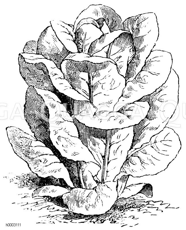 Gartensalat, Sorte: Grüner später Bindsalat: Zeichnung/Illustration/Holzstich – – –