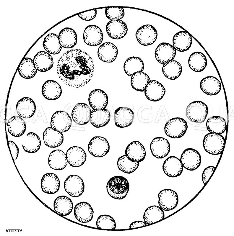Blut bei mikroskopischer Betrachtung: Zeichnung/Illustration/Holzstich – – Blood under the microscope – Sang sous observation microscopique
