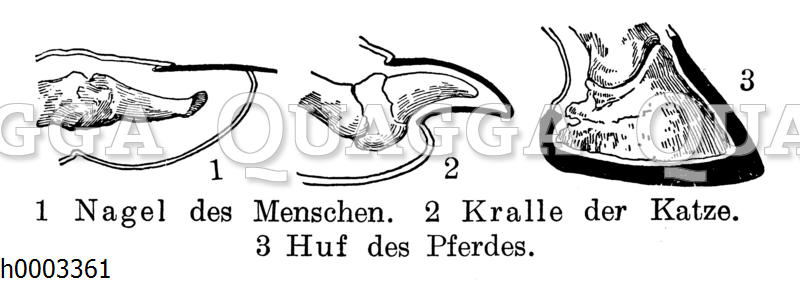 Nagel des Menschen, Kralle der Katze, Huf des Pferdes: Zeichnung/Illustration/ – – Nail of man, the cat ’s claw , hoof of the horse