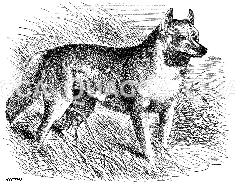 Dingo oder Warragal: Zeichnung/Illustration/Holzstich – Canis dingo – –