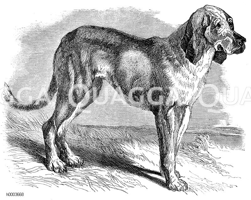 Bluthund: Zeichnung/Illustration/Holzstich – Canis sanguinarius – Bloodhound –