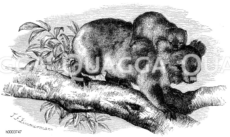 Koala: Zeichnung/Illustration/Holzstich – – –