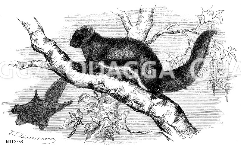 Flattereichhörnchen, Ljutaga: Zeichnung/Illustration/Holzstich – Sciuropterus sibiricus – –