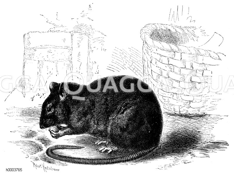 Hausratte: Zeichnung/Illustration/Holzstich – Mus rattus – –