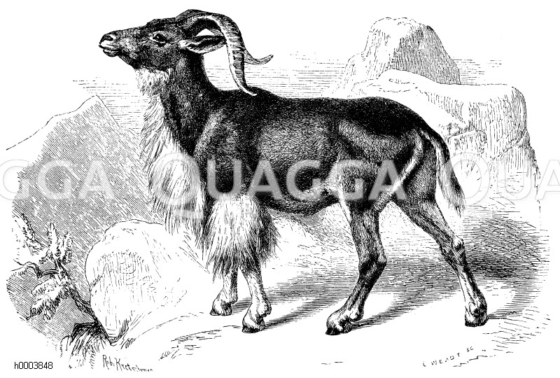 Afrikanisches Mähnenschaf: Zeichnung/Illustration/Holzstich – – African maned sheep – Mouton à crinière africain