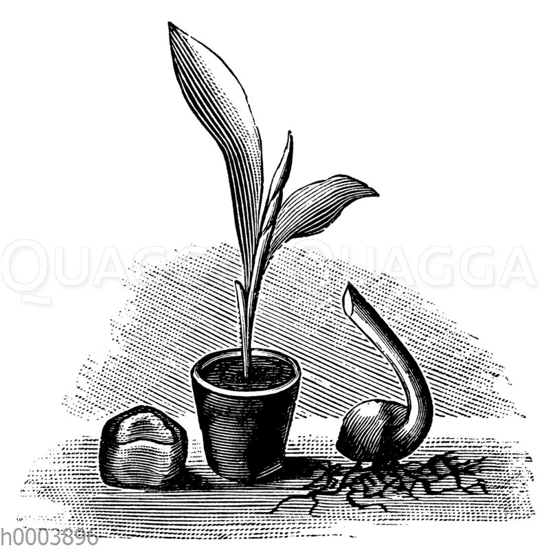 Banane: Keimung: Zeichnung/Illustration/ – Ensete ventricosum – –