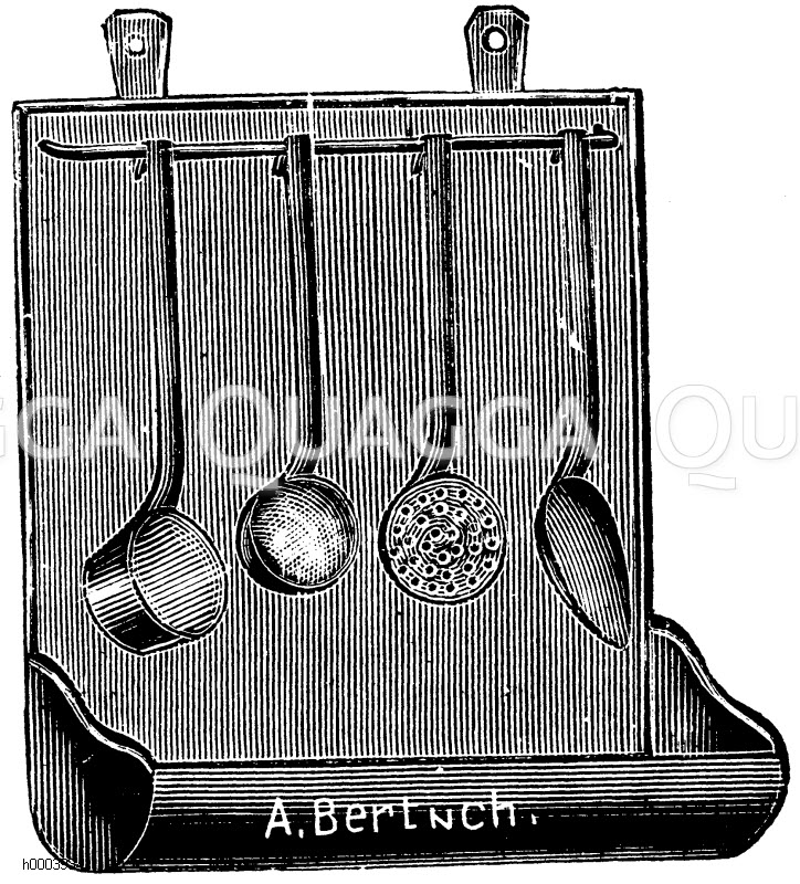 Löffelhalter: Zeichnung/Illustration/Holzstich – – spoon holder –