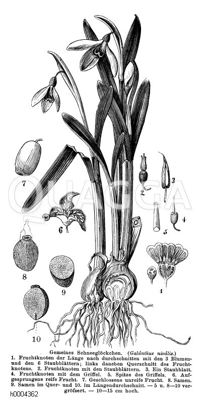 Schneeglöckchen: Zeichnung/Illustration/Holzstich – Galanthus nivalis – Snowdrop –