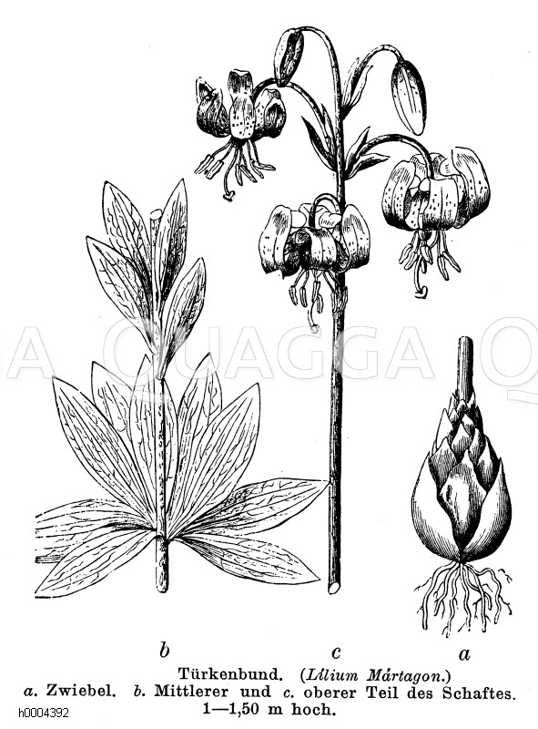 Türkenbundlilie: Zeichnung/Illustration/Holzstich – Lilium martagon – martagon lily, Turk’s cap lily – Lis martagon