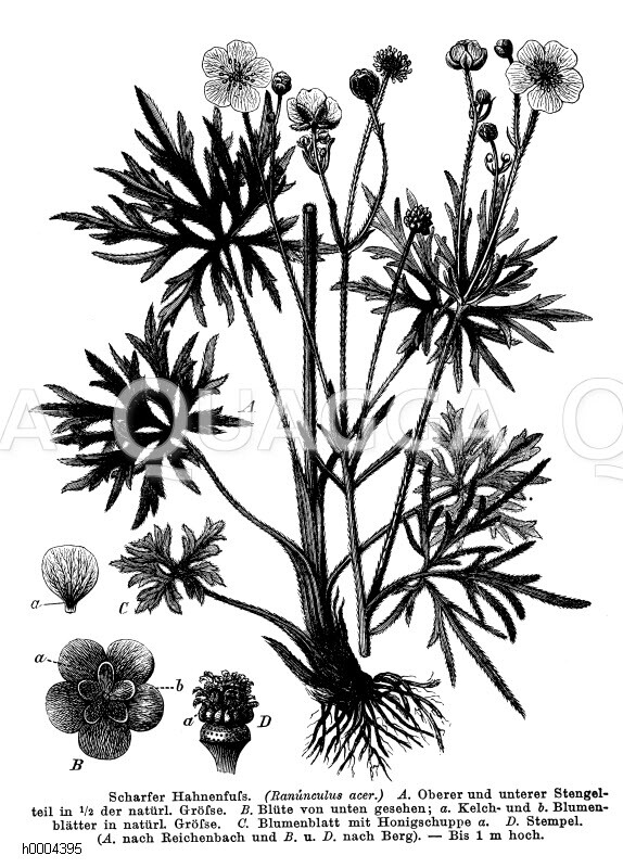 Scharfer Hahnenfuß: Zeichnung/Illustration/Holzstich – Ranunculus acer – –