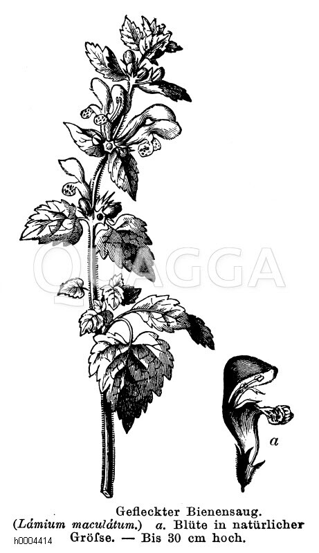 Gefleckter Bienensaug: Zeichnung/Illustration/Holzstich – – spotted Lamium –