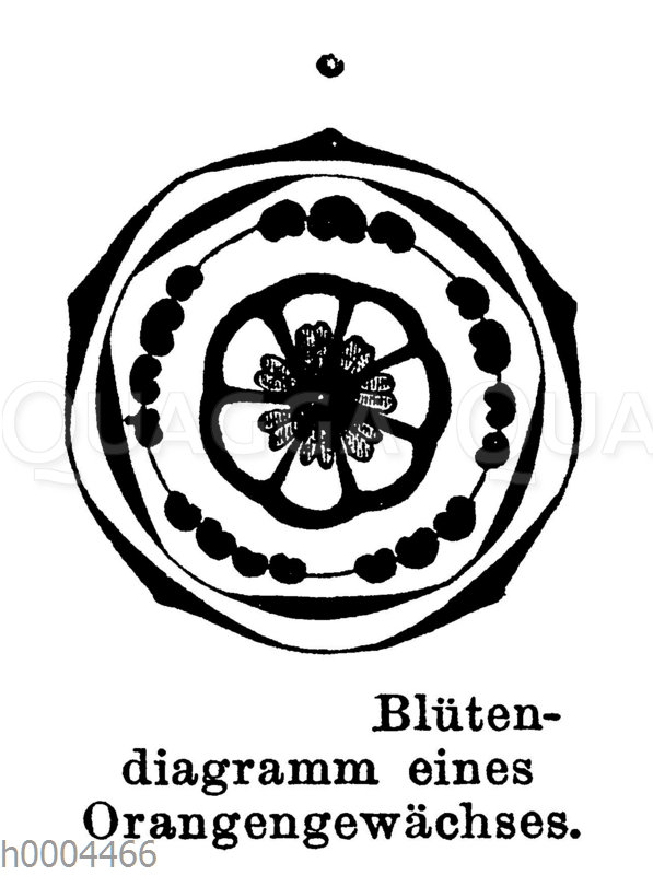 Blütendiagramm eines Orangengewächses: Zeichnung/Illustration/Holzstich – – –