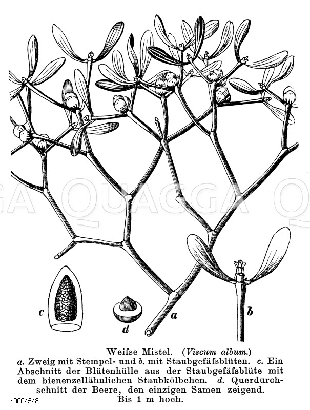 Weiße Mistel: Zeichnung/Illustration/Holzstich – Viscum album – Mistletoe – Gui