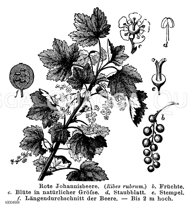 Johannisbeere: Zeichnung/Illustration/Holzstich – Ribes rubrum – Currant –