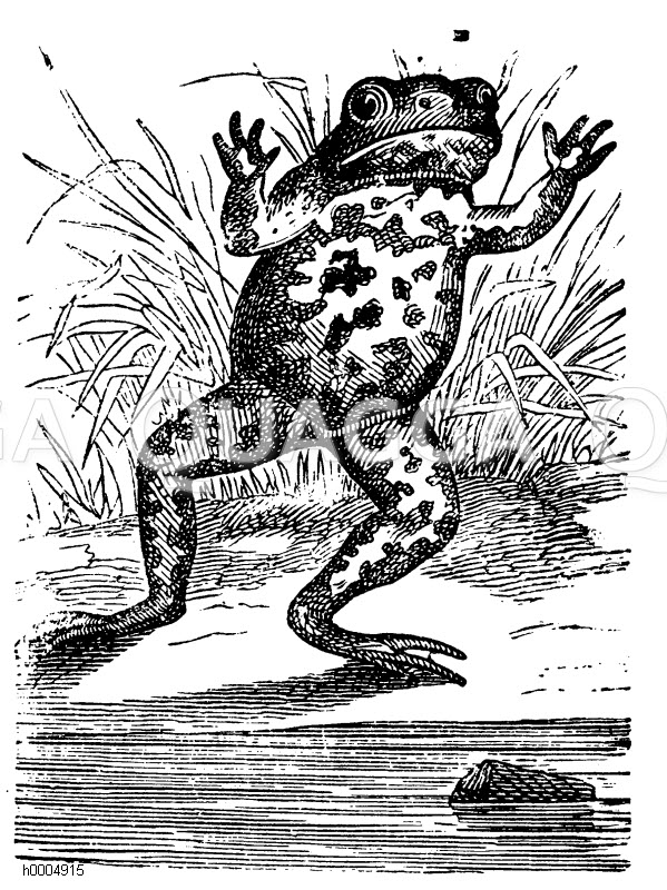 Unke, Feuerkröte: Zeichnung/Illustration/Holzstich – Bombinator igneus – –