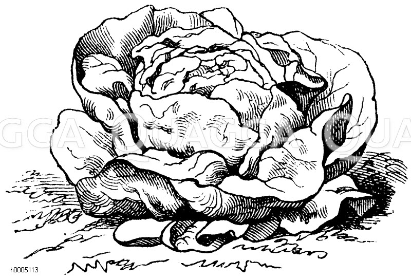 Gartensalat, Sorte: Pfälzer Salat: Zeichnung/Illustration/Holzstich – – –