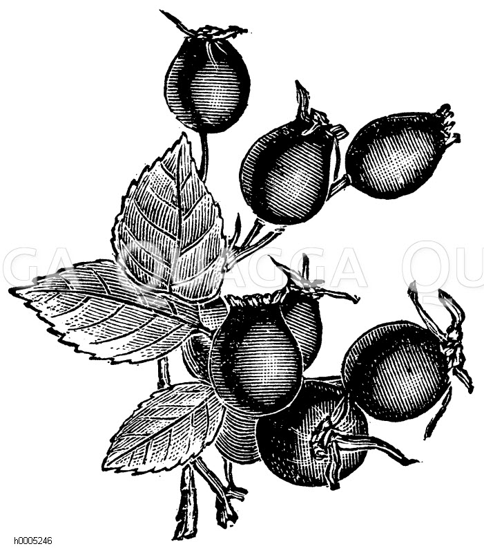 Hagebutte: Zeichnung/Illustration/Holzstich – – Hip –