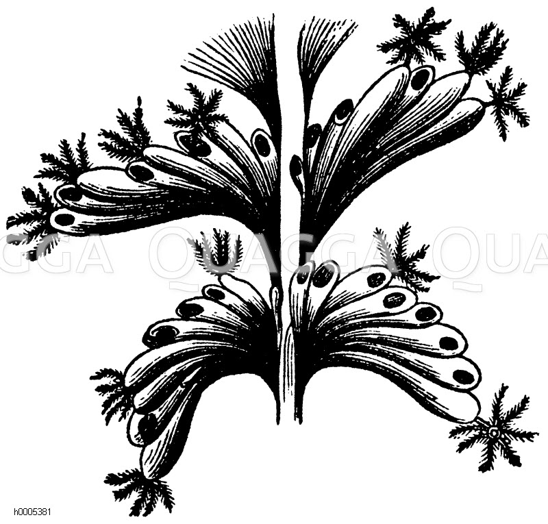 Ruthenkoralle: Zeichnung/Illustration/Holzstich – Virgularia mirabilis – –