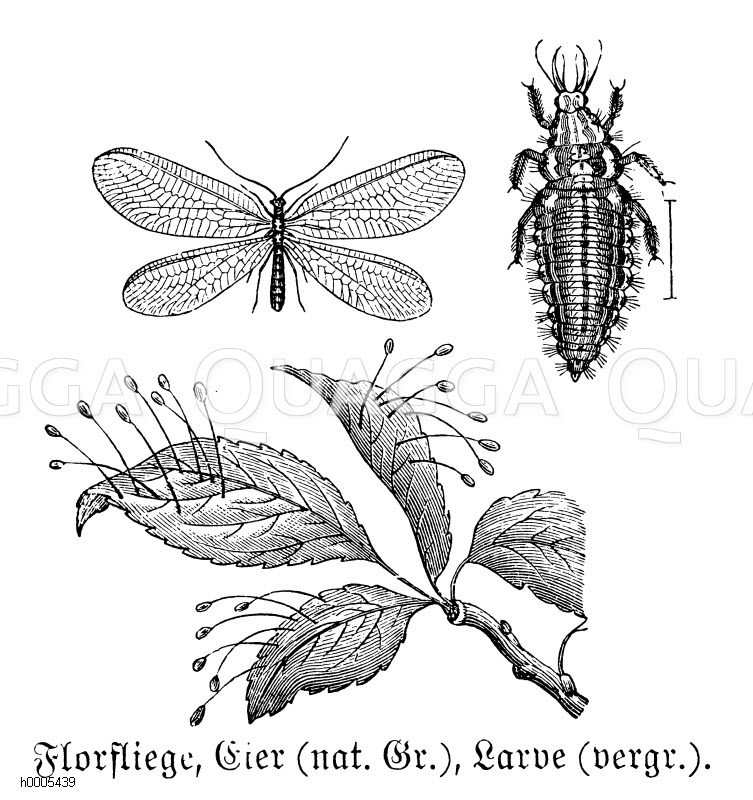 Florfliege: Zeichnung/Illustration/Holzstich – Chrysopa perla – Lacewing –