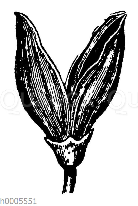 Türkischer Flieder:Frucht: Zeichnung/Illustration/Holzstich – Syringa vulgaris – –