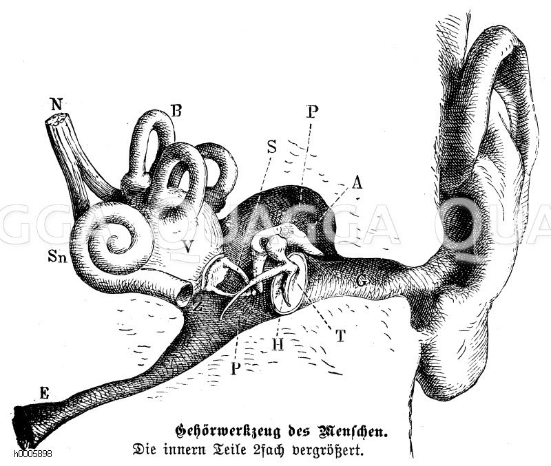 Mensch: Gehör: Zeichnung/Illustration/Holzstich – – Human: Hearing – Humain: audition
