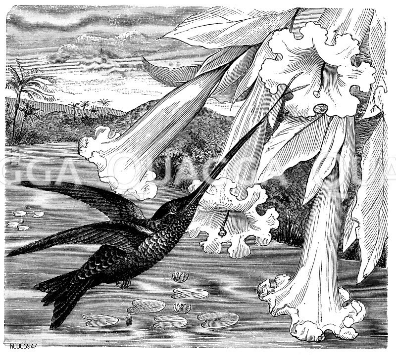 Topaskolibri: Zeichnung/Illustration/Holzstich – Trochilus pella – –