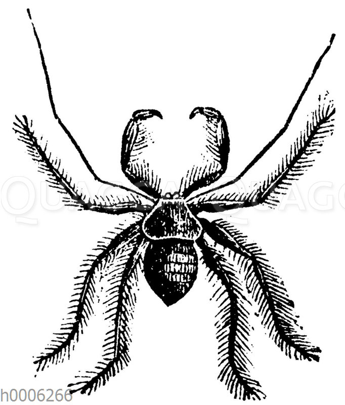 Geißelskorpion: Zeichnung/Illustration/Holzstich – Phrynus reniformis – –