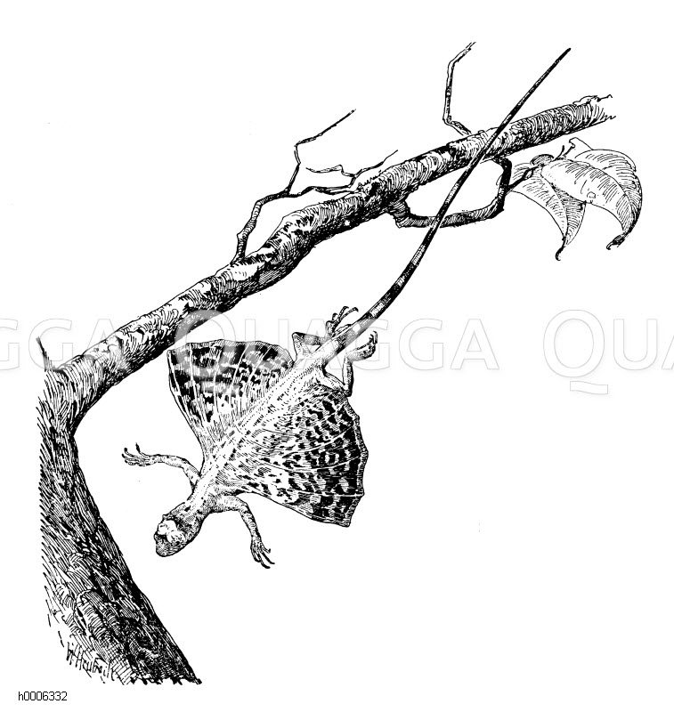 Flugdrache: Zeichnung/Illustration/Holzstich – Draco volans – –