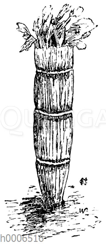 Bleichsellerie, Stangensellerie, zum Bleichen mit Papier umwickelt: Zeichnung/Illustration/Holzstich – Apium graveolens var. dulce – blanched celery – céleri en branches