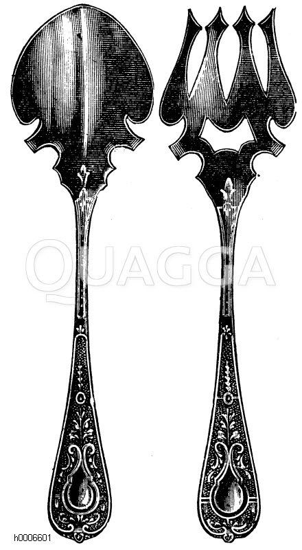 Salatbesteck: Zeichnung/Illustration/Holzstich – – salad Servers –