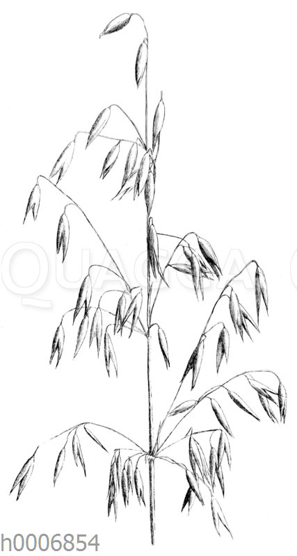 Weißer unbegrannter Rispenhafer: Zeichnung/Illustration/Holzstich – Avena sativa var. mutica – –