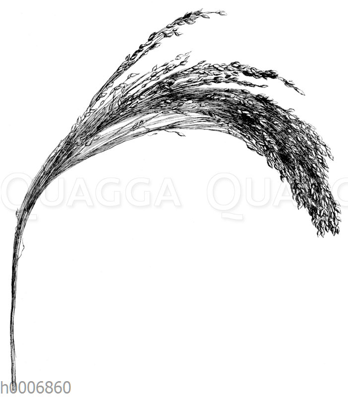 Gelbe Klumphirse: Zeichnung/Illustration/Holzstich – Panicum miliaceum contractum aureum – –
