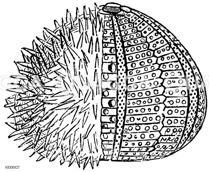 Seeigel: Zeichnung/Illustration/Holzstich – Echinus esculentus – Sea urchin –