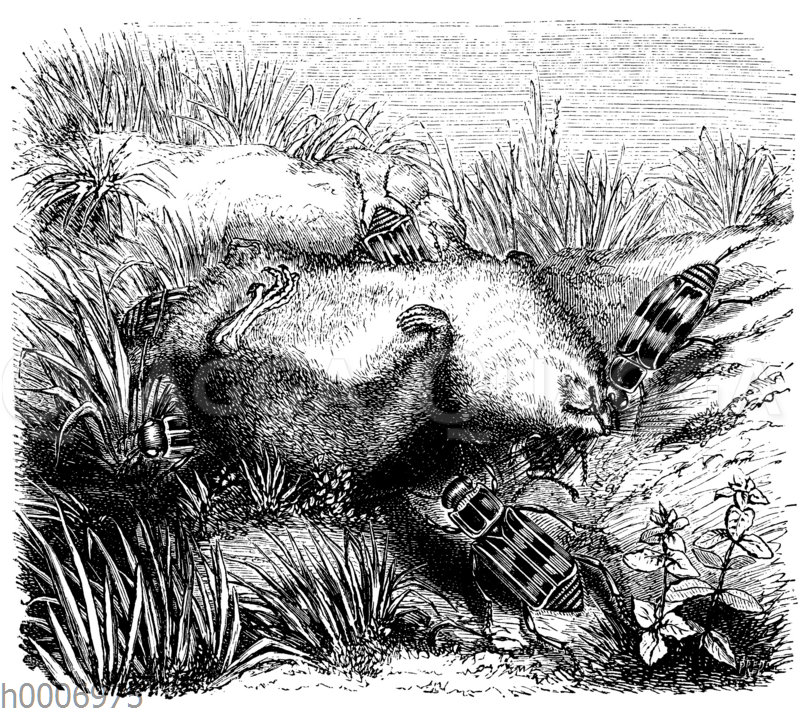 Totengräberkäfer: Zeichnung/Illustration/Holzstich – – Burying Beetles – nécrophore