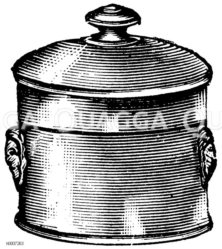Pastetentopf mit überfallendem Deckel: Zeichnung/Illustration/Holzstich – – –