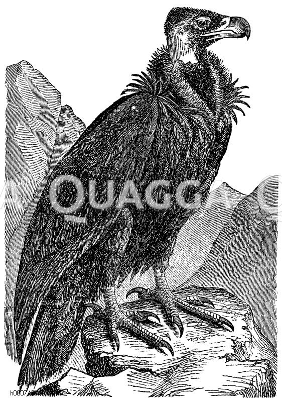 Grauer Geier, Brauner Geier, Kuttengeier: Zeichnung/Illustration/Holzstich – Vultur cinereus – –