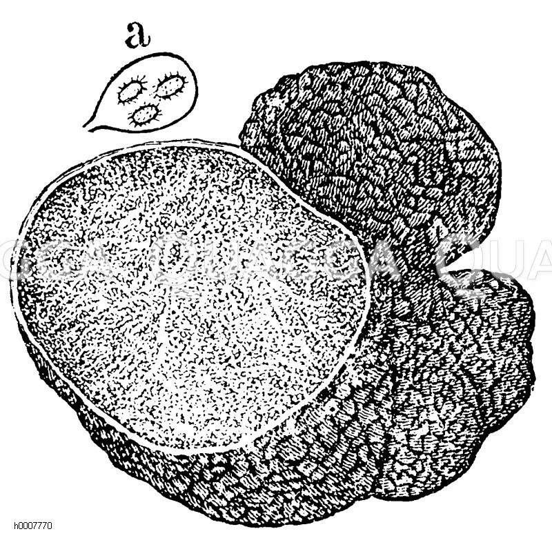 Speisetrüffel: Zeichnung/Illustration/Holzstich – Tuber cibarium – truffle – truffe