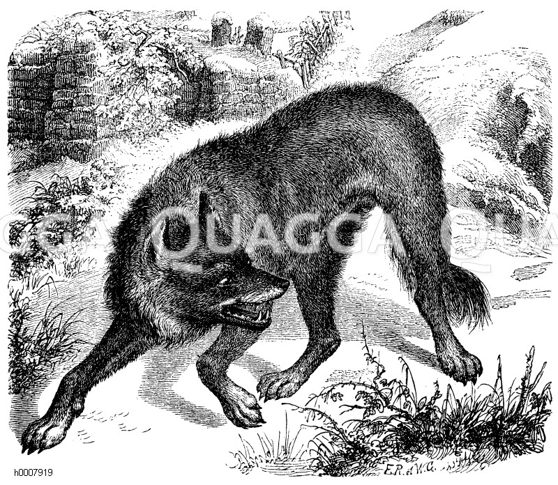Wolf: Zeichnung/Illustration/Holzstich – Canis lupus – Wolf –