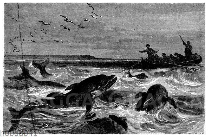 dolphin; Dolphin; tamer; Dressage; graphics; Wood engraving; stitch; animal; animals; xylograph; woodcut; Zoology; train; trained; zoological illustration,