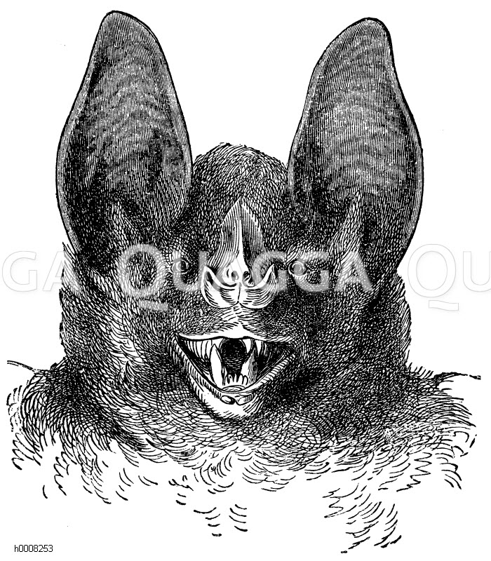 Vampir: Kopf: Zeichnung/Illustration/ – Phyllostoma spectrum – –