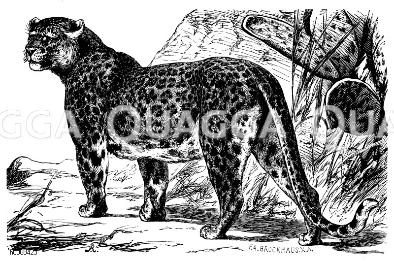 Leopard: Zeichnung/Illustration/Holzstich – Felis pardus – Leopard –