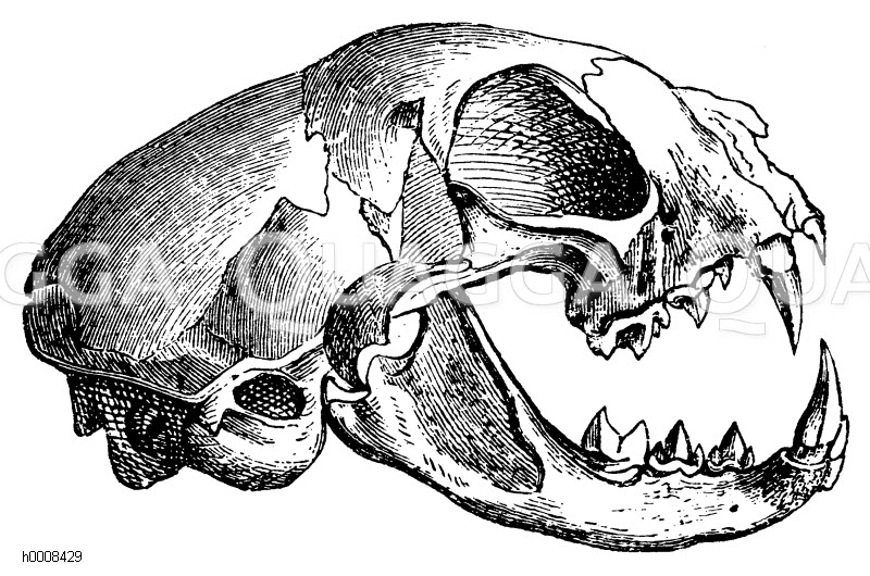 Wildkatze: Schädel: Zeichnung/Illustration/Holzstich – Felis catus – Wildcat, wild cat: skull –