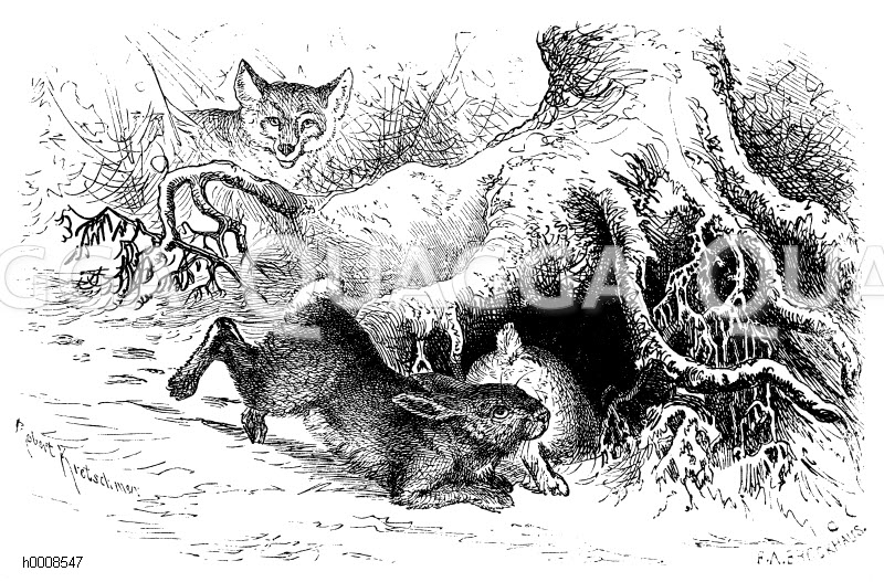 Wildes Kaninchen: Zeichnung/Illustration/Holzstich – Lepus caniculus – –