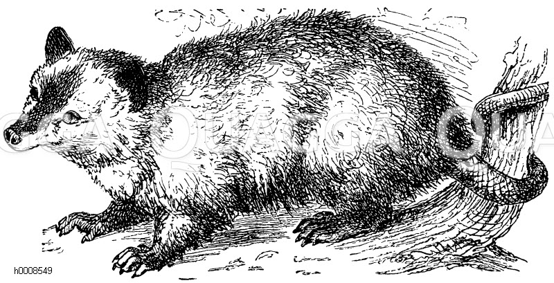 Graue Beutelratte: Zeichnung/Illustration/Holzstich – Didelphys cinerea – –