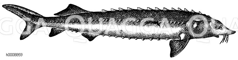 Hausen: Zeichnung/Illustration/Holzstich – Acipenser huso – –