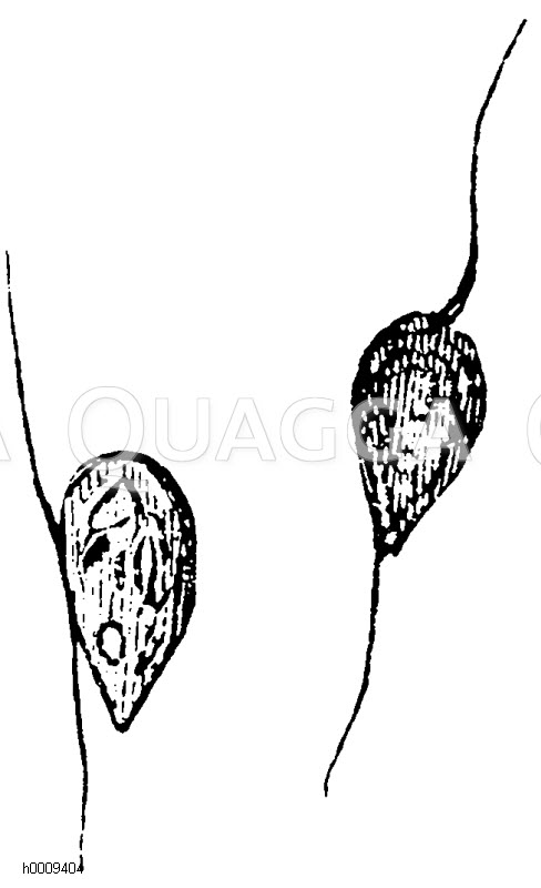 Schwärmsporen von Peronospora infestans: Zeichnung/Illustration/Holzstich – – –